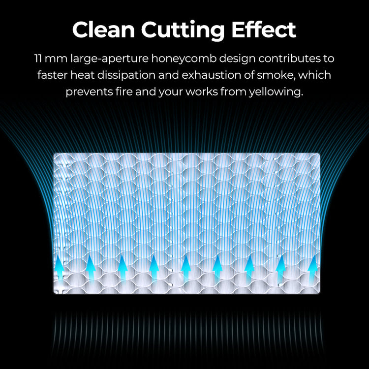 ➤Clean, streak-free cuts: Its wide-opening (11 mm) honeycomb structure promotes heat dissipation and fume evacuation, limiting burns and yellowing of materials.